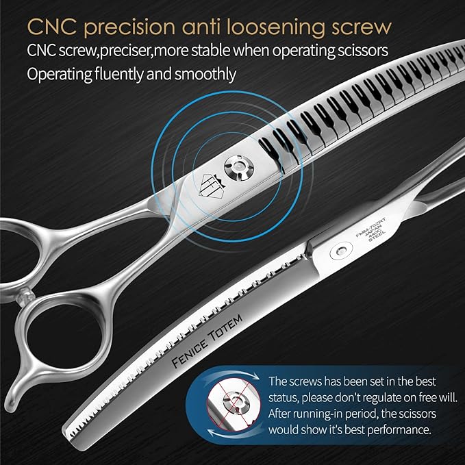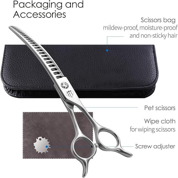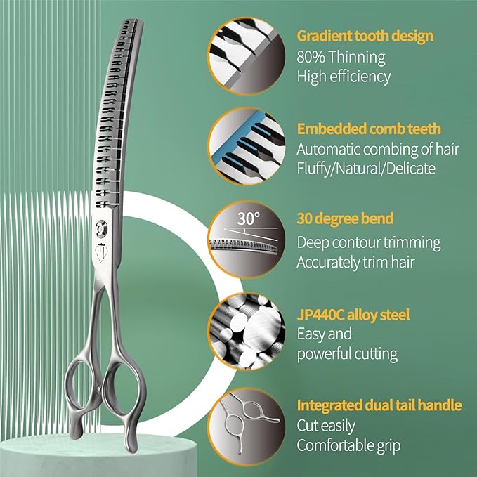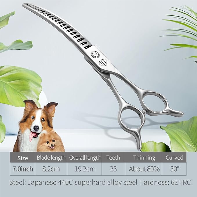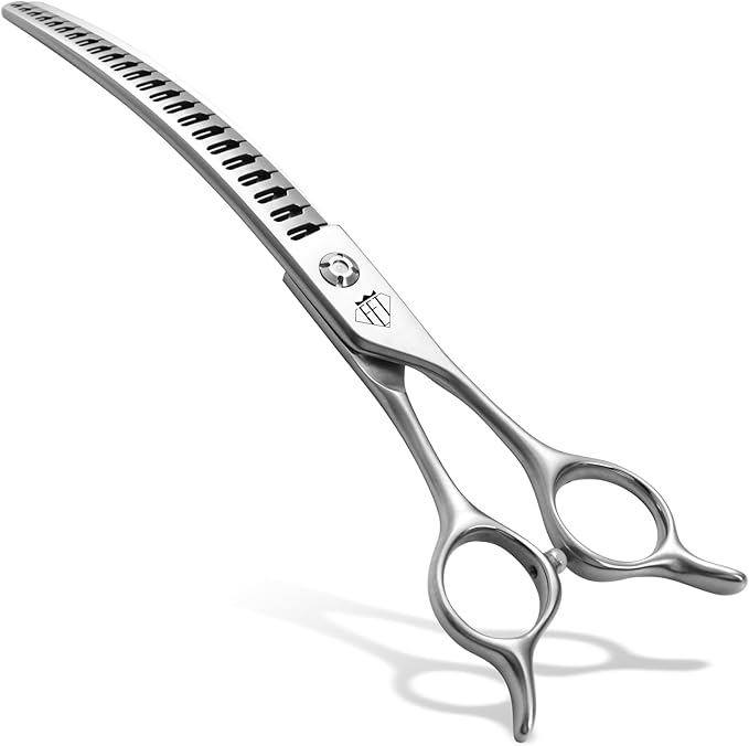 Professional Pet Grooming Scissors, Curved Chunker with Gradient Teeth, JP440C Steel, 80% Thinning Efficiency (7 inch)