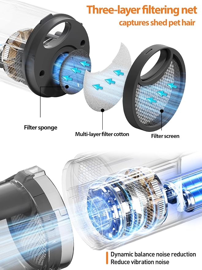 - 【Low Noise Design With 3 Adjustable Suction Levels】 Low noise is a key quality in pet grooming vacuum for dogs or cat. The itutn pet vacuum for pet hair utilizes the latest Dynamic balance noise reduction technology to keep your pet at ease during grooming. Maximum suction operates below 60DB, and minimum suction noise stays under 50DB.With three adjustable suction levels, you can customize the suction based on your pet’s comfort. This feature helps reduce grooming stress, keeping your pet calm during the process and ensuring a pleasant grooming experience for both of you.