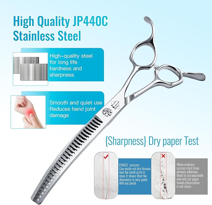 - CURVED DESIGN: Professional-grade thinning scissors featuring a 30-degree curved blade for precise grooming and enhanced control