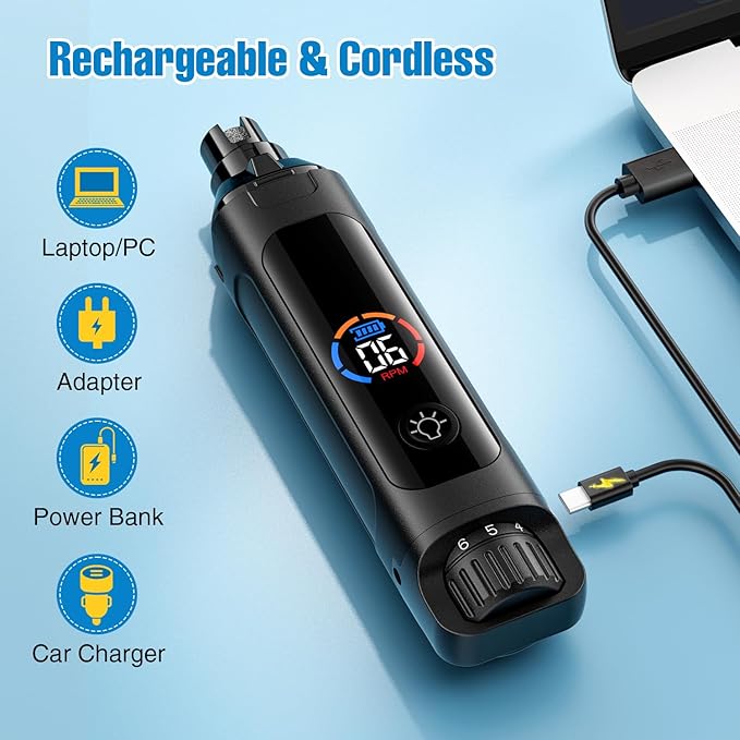 - Upgrade 6 speeds & 3 Grinding Ports: Whether it's kitten claws or large dog nails, this upgrade ensures faster, smoother, and stress-free trimming. Match the precise speed and port according to your pet's needs, allowing you and your pet to enjoy a relaxing nail trimming experience.