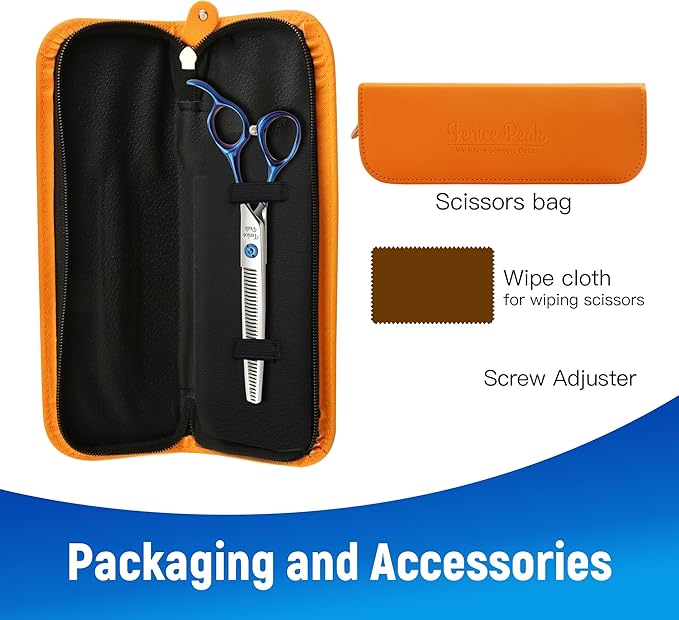 Fenice Peak Grooming Scissors for Dogs 7 inch Thinning Pet Grooming Scissors Ergonomically Designed Blue Handles Ideal Dog Shears for Precise Trimming Easy Use.