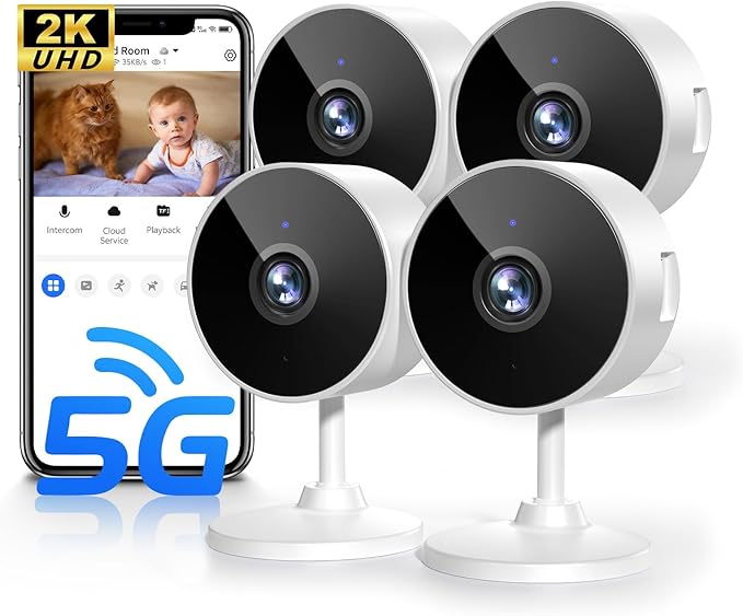 [5G & 2.4G] 2K Indoor Security Cameras for Home Security, AI Voice Change for 2-Way Talk, Motion Detection, Night Vision, 24/7 SD Recording/Cloud Storage, Baby Monitor/Dog/Pet Camera with Phone App, 4