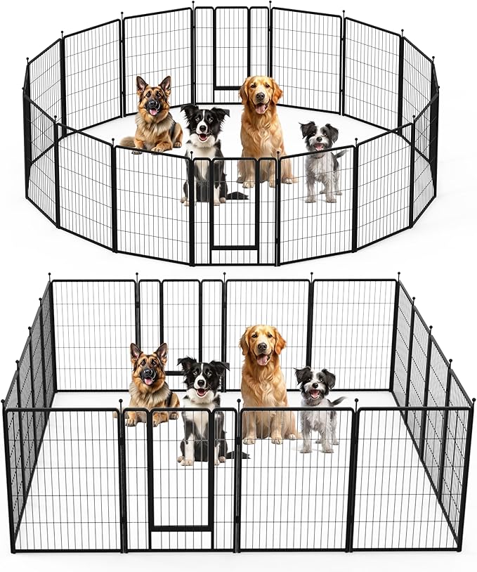 - 【Easy Assemble & DIY Shapes】Each panel is a separate piece. The panels could be assembled in just a few minutes without tools. You could DIY the dog pen to any shape you need, like square, rectangle, round, etc according to your house, garden or lawn.