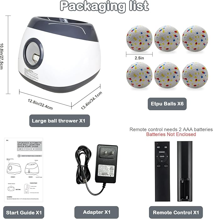 - Automatic Dog Ball Launcher: This upgraded dog ball launcher is designed for medium and large dogs, it can launch 2.5" balls up to 80ft, meeting your dogs playing and fetching interest, keeping them active and healthy.