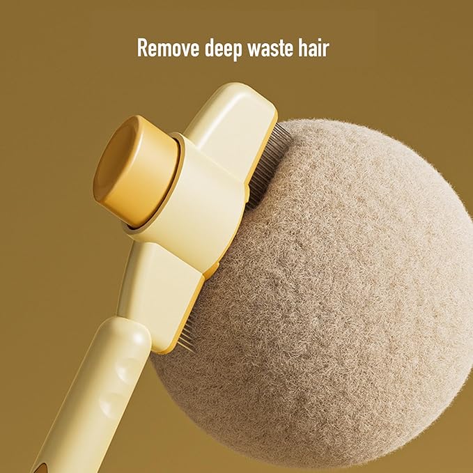 Pet Brush, Hair Grooming Brush Removal Comb, Cat Dog Brush for Massaging and Cleaning Shedding, Multifunctional with Release Button, Yellow