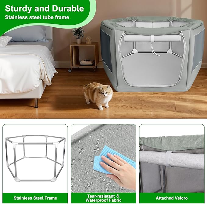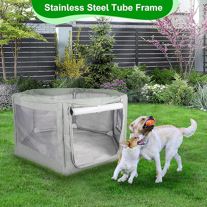 - STURDY AND DURABLE: The puppy playpen is made of thickened stainless steel tube frame structure, which is sturdy and won't collapse, and can effectively respond to your pet's impact on the pet playpen while playing. This puppy playpen wrapped in Oxford waterproof fabric, waterproof, moisture-proof and easy to clean, and the bottom can be effectively isolated from moisture.