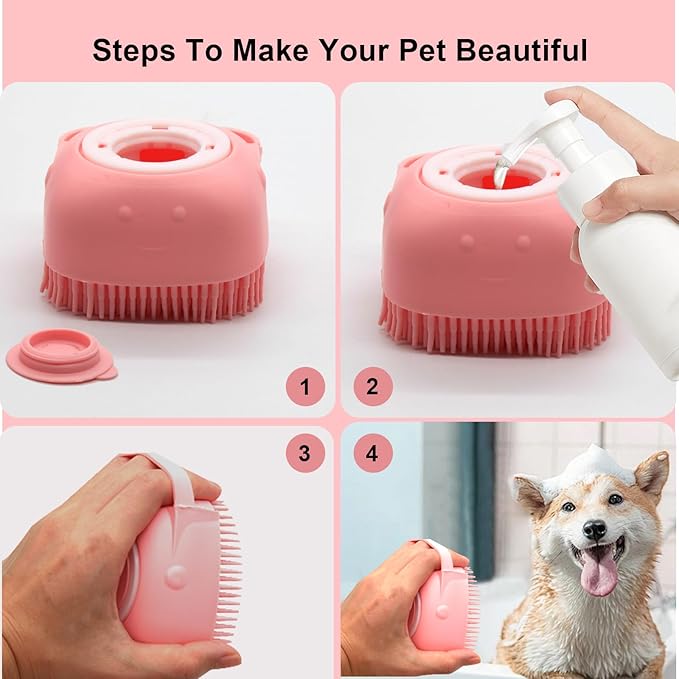 - Easy to Use for Effective Cleaning: Our pet shampoo dispenser is compatible with all types of liquid shampoos, enhancing the effectiveness of lathering for a deeper clean. The brush's numerous soft nubs ensure a scratch-free massage, removing dead fur and dirt without irritating your pet's skin, making bath time a breeze with our dog scrubber for bath.