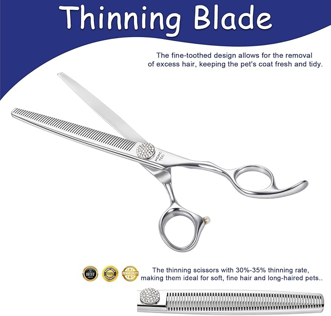 Professional Thinning Dog Grooming Scissors with Simulation Diamond 440C Stainless Steel Polished Pet Cat Thinner Blender Shears for Groomers and Home users 7.5''
