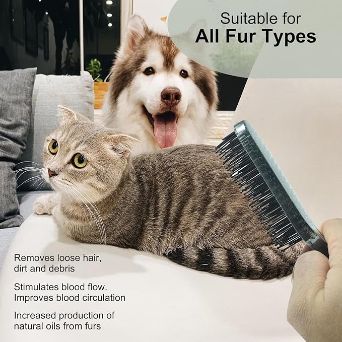 - MULTIFUNCTIONAL & SAFE - Every brush tooth is smooth, durable and corrosion-resistant, won’t rust or fade. It can be used wet or dry baths clean to shine the coat for dog, cat, rabbit for removing pet hair, fluff, and dust on sofas, cat rooms, carpets, car mats, stair carpets, dog rooms, car seats, clothing and more.