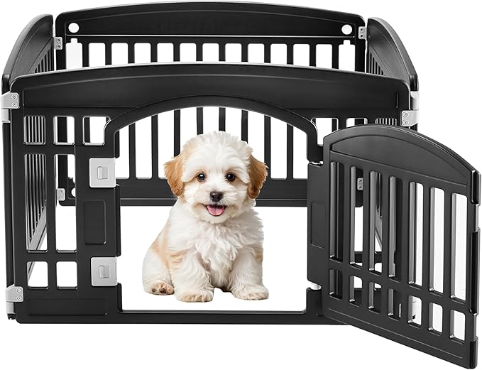 Simple Deluxe Plastic Dog Playpen, 24" Exercise 4-Panel Pet Playpen with Door, Safe and Secure, Folding and Portable Puppy Playpen for Puppies and Small Dogs, Black