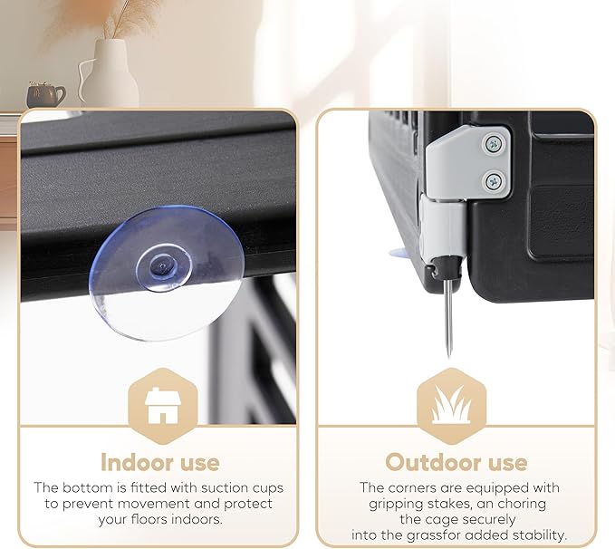 - Easy Installation: Our dog pen has 3 non-door panels and 1 with door panels, each with rubber feet to protect the floor. By snapping the panels into place, the pet pen can be easily assembled together