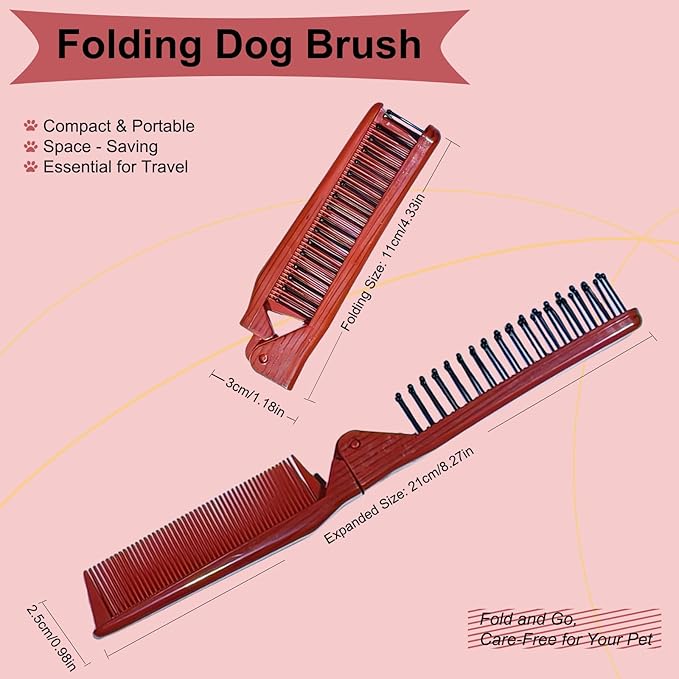 Folding Small Dog Grooming Brush - Perfect for Shih Tzus, Yorkies, and Maltipoos - Ideal Puppy Hair Brushes for Maltese and Small Breeds (Red)
