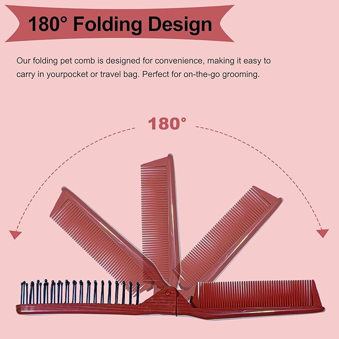 - Convenient Folding Mechanism: The foldable design of this grooming comb makes it easy to store and carry around. Simply fold the comb in half to protect the teeth and handle, making it a compact and portable grooming tool for on-the-go use or travel.