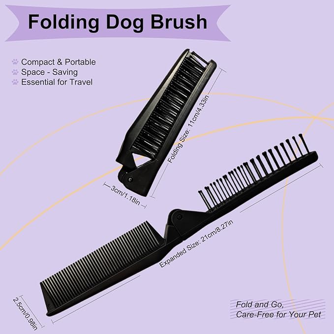 - Dual-Use Design: This foldable grooming comb features two different types of comb teeth on each end - one end with dense teeth for detangling and massaging, and the other end with sparse teeth for a softer grooming experience. This versatility allows you to use the comb for various grooming tasks, from brushing out tangles to massaging your pet's skin during bath time.