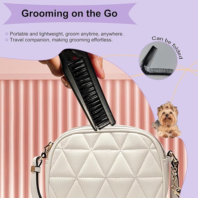 Folding Small Dog Grooming Brush - Perfect for Shih Tzus, Yorkies, and Maltipoos - Ideal Puppy Hair Brushes for Maltese and Small Breeds (Black)