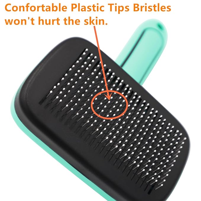 - SELF-CLEANING MECHANISM: One-click button releases trapped fur and debris from brush bristles for quick and easy cleaning