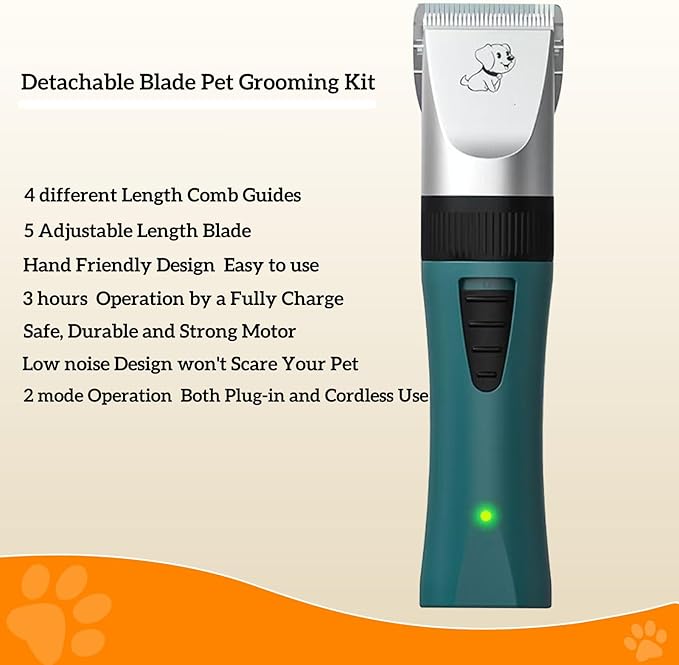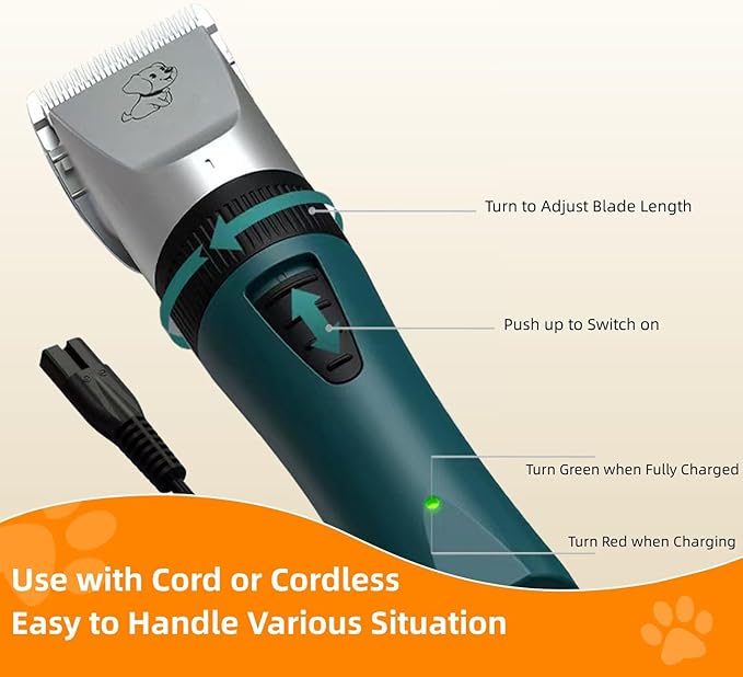 - Quiet Motor and Low Noise - The clipper is made of high-speed and quiet motor. The working noise is lower than 60db. It makes your pets feel easy and no afraid of cutting hair any more.