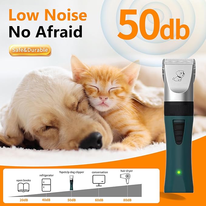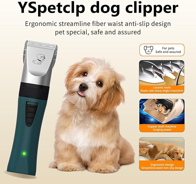 Dog Clippers for Grooming Low Noise, Rechargeable, Cordless, YSpetclp Pet Shaver for Matted Hair, Quiet Animal Trimmer Pet Hair Thick Coats Clippers, Suitable for Dogs, Cats, Rabbits and Other Pets
