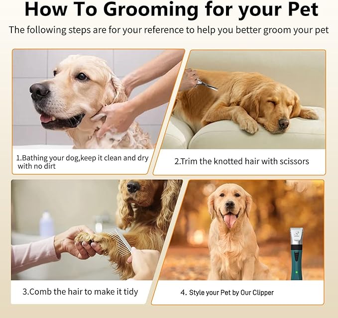 - Note: For pets with long and thick hair, Use the scisser cut the hair shorter and comb the hair before groom will make the grooming easier.