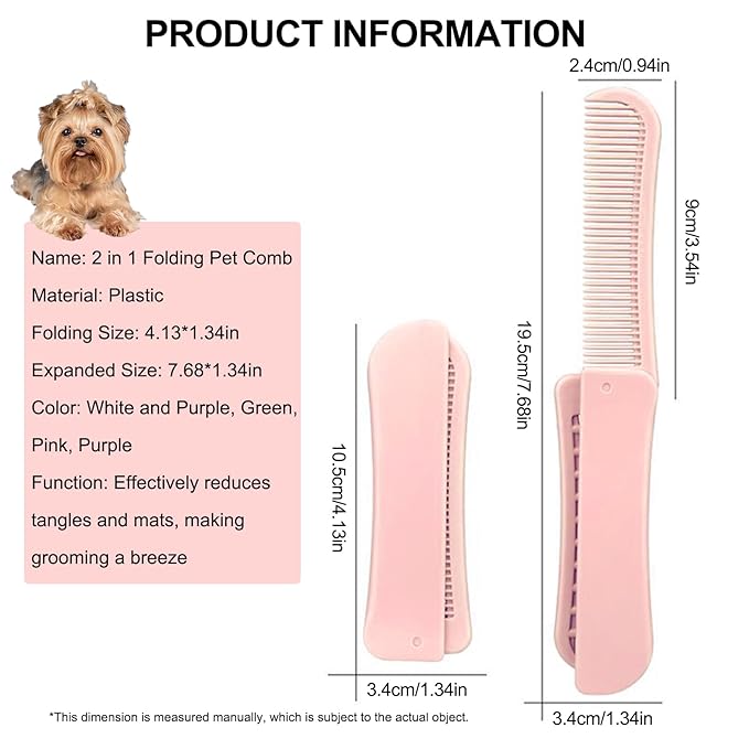 - Innovative foldable design allows the soft bristle comb heads to collapse into the ergonomic plastic handle for compact storage and travel-friendly portability while offering two interchangeable comb options – a dense-tooth comb for tackling tough mats and removing stubborn loose hair and a wide-spaced comb for gentle detangling and daily brushing sessions on delicate puppy coats
