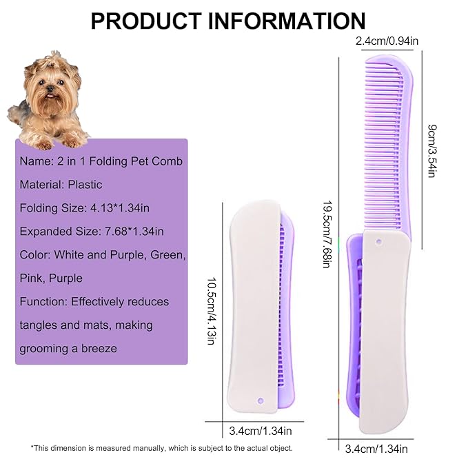 - Innovative foldable design allows the soft bristle comb heads to collapse into the ergonomic plastic handle for compact storage and travel-friendly portability while offering two interchangeable comb options – a dense-tooth comb for tackling tough mats and removing stubborn loose hair and a wide-spaced comb for gentle detangling and daily brushing sessions on delicate puppy coats