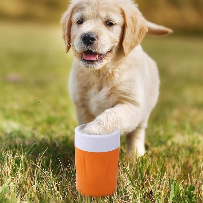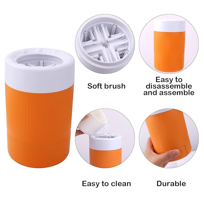 Pet Foot Washing Cup, Portable Pet Foot Washer with Soft Brush Muddy Dog Paw Cleaner for Dogs/Cats Feet Cleaning Tool(Orange)