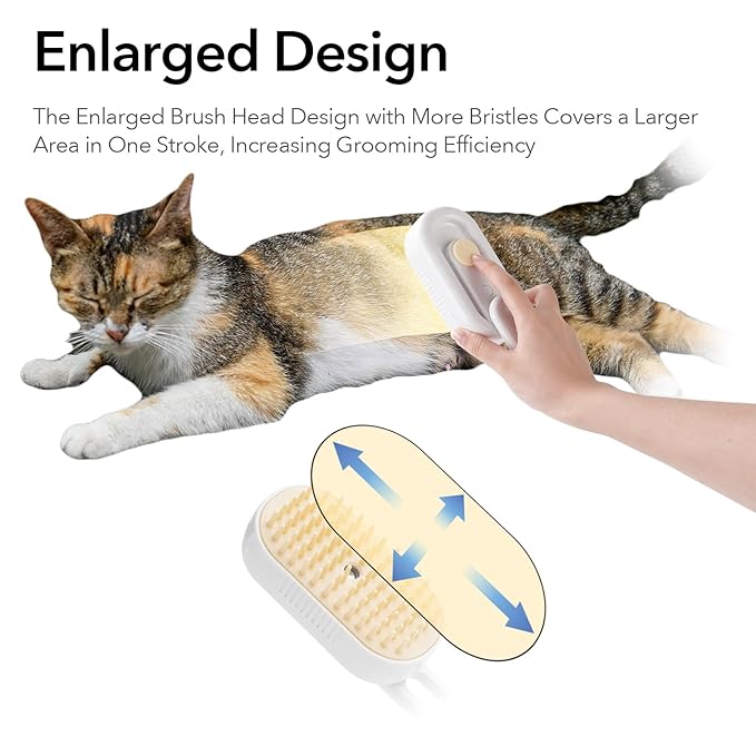 - Advanced Nano-Spray Technology: The steam cat brush features an enlarged nano-level spray design that reduces static friction and prevents loose fur from scattering while using the steamy cat brush. Compatible with no-rinse solutions for easy cleaning