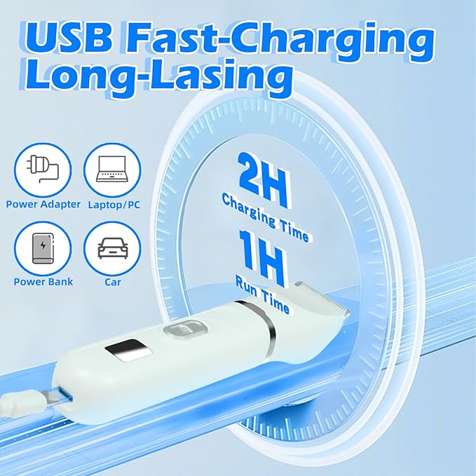 - 【Fast Charging】Pet trimmer equipped with a build - in 600mAh fast - charging lithium - ion battery, after just 2 hours of full charging, it provides up to 60 minutes of long - lasting clipping time. The LED display on the dog clippers clearly shows the remaining battery percentage. USB charging cable is provided, not the power adapter.
