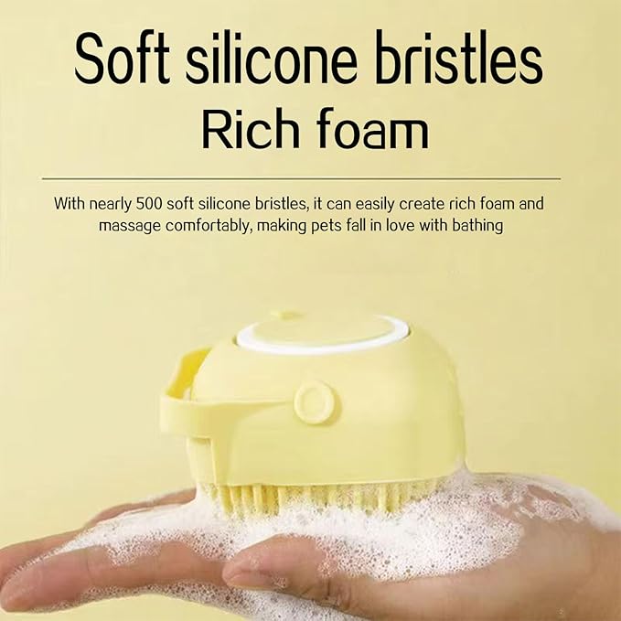 - Shampoo Dispensing Design: 1Pcs Dog Bath Brush is designed with shampoo dispensing. Pour in your pet's usual shampoo and water, shake well, and gently squeeze the brush to create a rich foam.