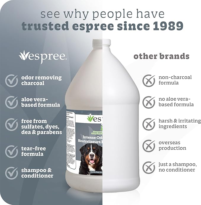 Espree Intense Charcoal Odor Neutralizer Dog Shampoo & Conditioner, Eliminates Stubborn Dog Odors, Plant Based Ingredients, 2 in 1, Charcoal-Infused Odor Neutralizer for Dogs, Cruelty-Free, Gallon