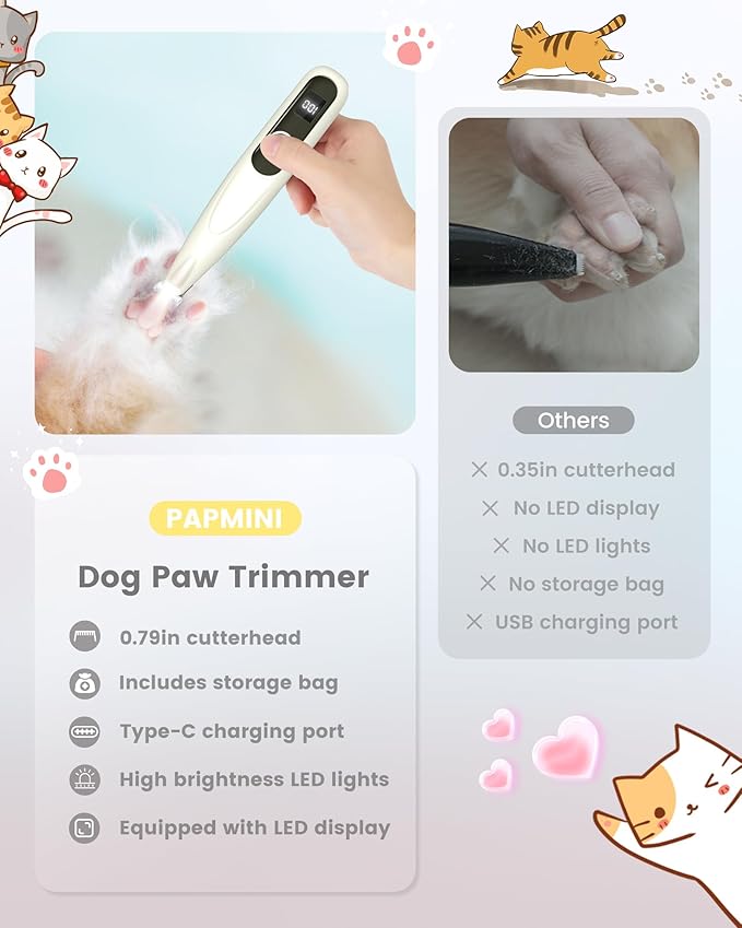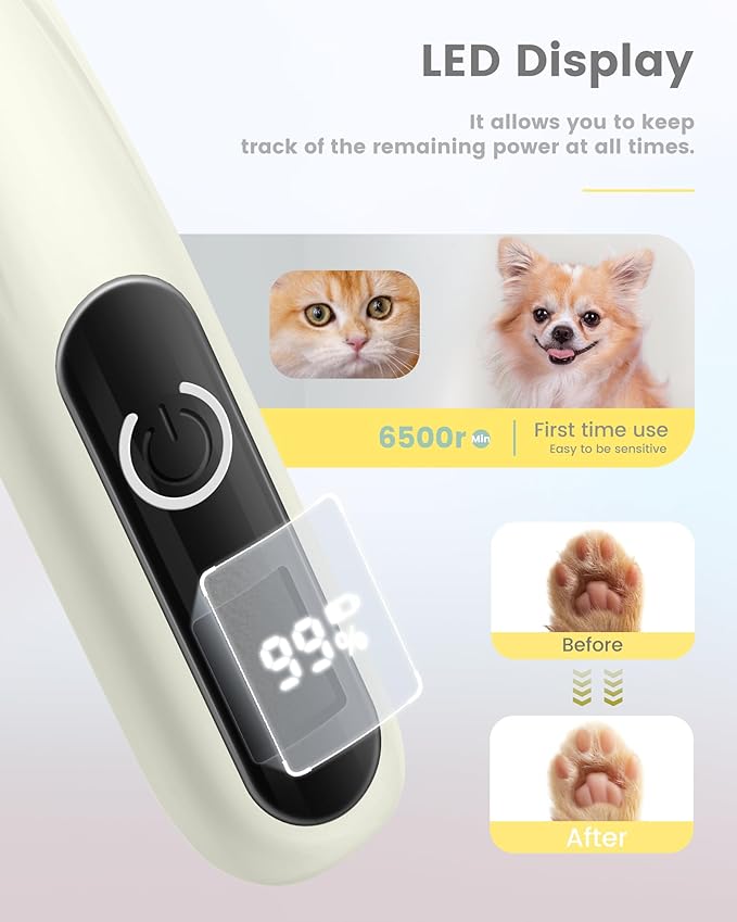 - New Upgraded Sharper Pet Paw Trimmer: Our newly enhanced pet trimmer features a high-performance motor and ultra-sharp blades for effortless grooming. Spend less time wrestling with fur, and more time enjoying cuddles with your pup