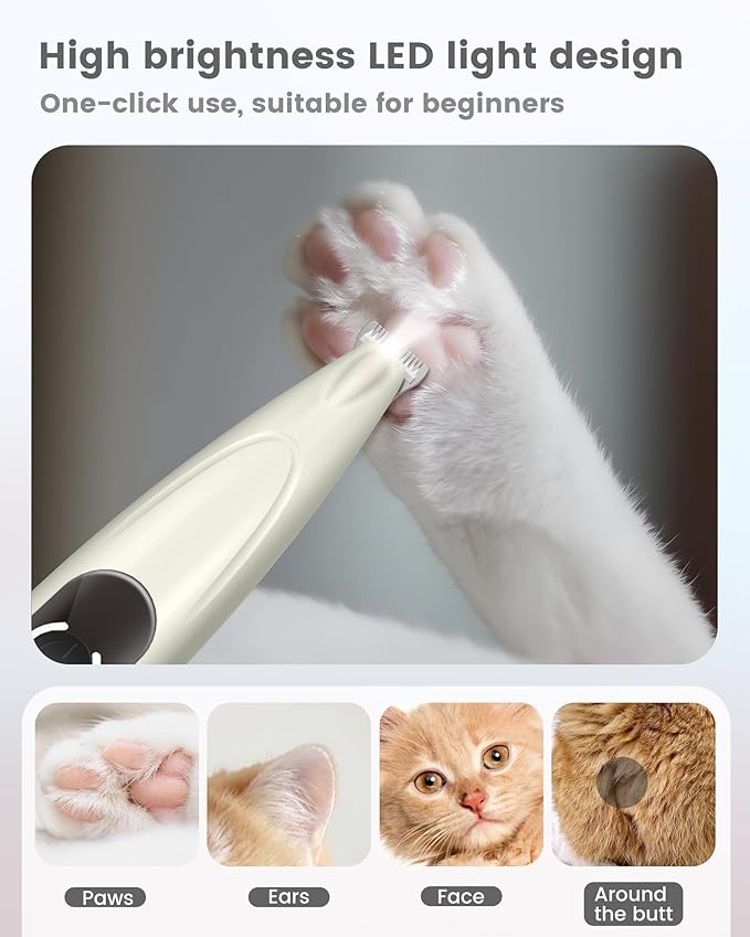 Upgrade Sharper Dog Paw Trimmer with LED Light, Low Noise Paw Trimmer for Dogs, Cordless Type-C Rechargeable Dog Clippers for Grooming Paws, Ears, Face, Rump