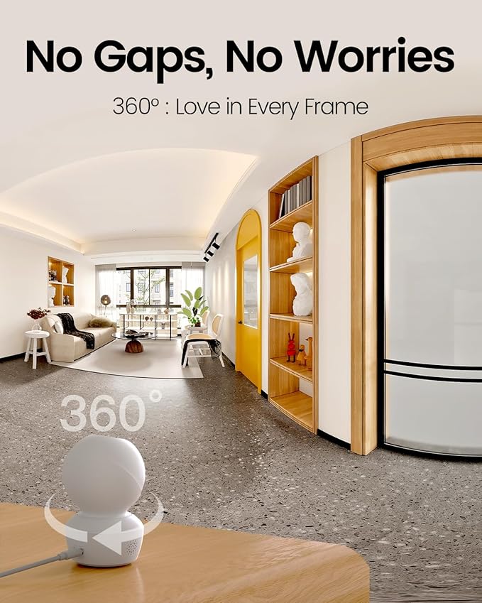 - 2.5K FHD & 360° Coverage: Experience stunning 2.5K resolution in live video or image that captures every detail of your home, room, kid or pet. The 360° panoramic design of dog cameras ensures comprehensive coverage of your living space, perfect for monitoring your baby, dog, doggy, puppy, cat, upgrade indoor security camera