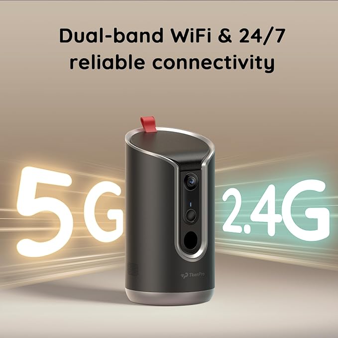 - 【Two-Way Talk & Dual-Band WiFi】The two-way talk feature enables Real-Time Interaction with your pet, lets you soothe anxious furry kids remotely. Supports 2.4GHz/5GHz WiFi and Alexa/Google Voice Control for smart home integration.