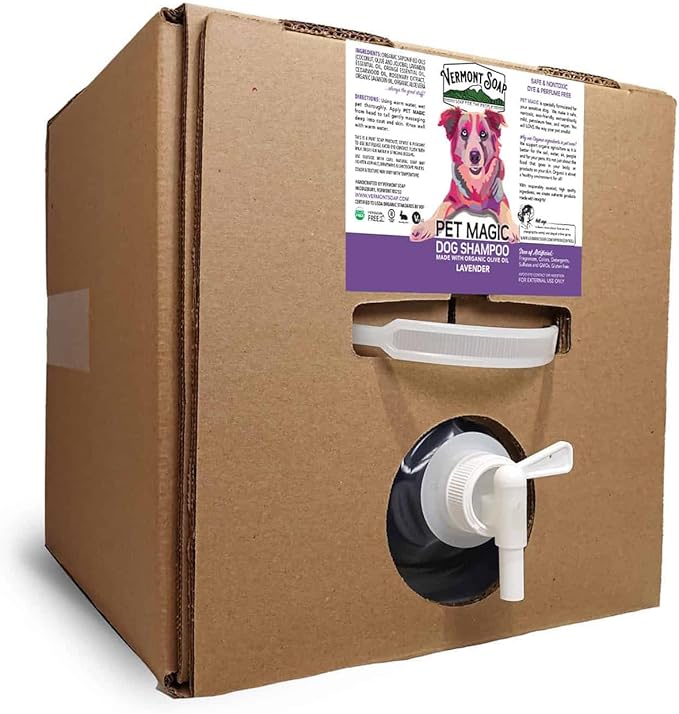 VERMONT SOAP Organics Pet Shampoo - Infused with Organic & Natural Olive Oil, Coconut & Aloe Vera Dog Shampoo for Sensitive Skin - USDA Certified Grooming Pet Shampoo - 5 Gallon