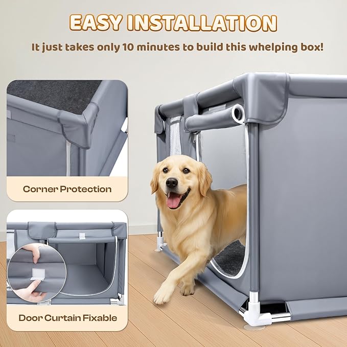 - 【Spacious and Secure Design】The Pawtenda Dog Whelping Box provides ample space with its 47 x 47 x 24 inch dimensions, making it perfect for expectant dog mothers and their newborn puppies. The 24 inch height effectively prevents dog moms from jumping out, ensuring a safe and secure environment.
