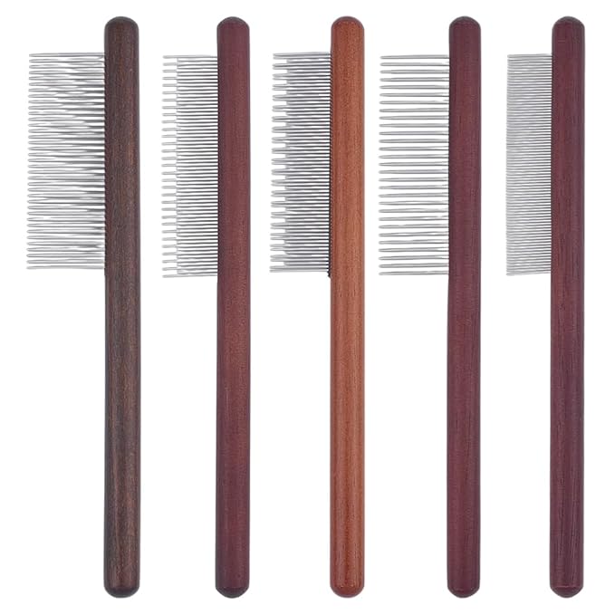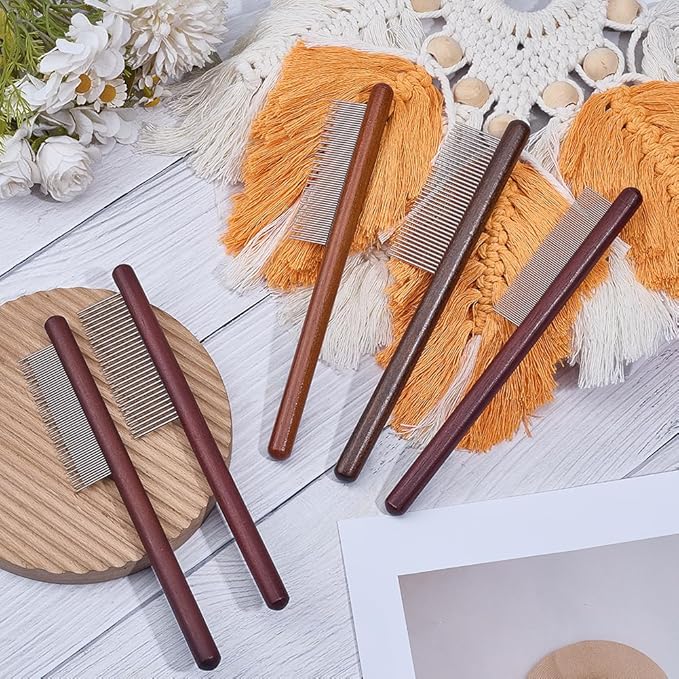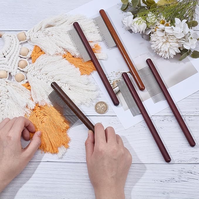 OLYCRAFT 5Pcs 5 Styles Macrame Fringe Combs Stainless Steel Fringe Combs with Wood Handle Wood Pet Combs Grooming Tool Tassel Brush Supplies for DIY Macrame Removing Tangles and Knots