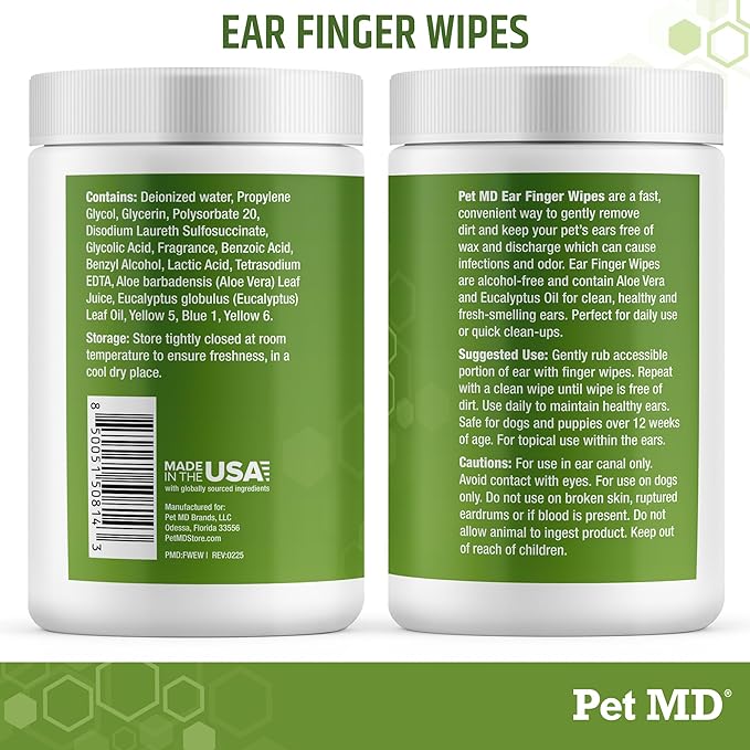- Made in USA – Crafted with quality and care, these Pet MD Ear Wipes for Dogs are an essential part of dog cleaning supplies. Perfect for ear cleaning for dogs, they help maintain clean ears and are dog must haves.
