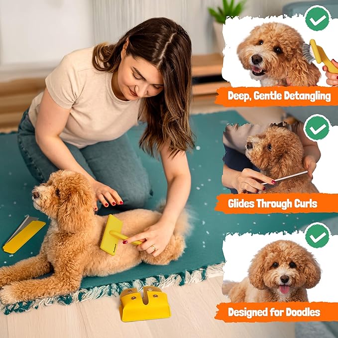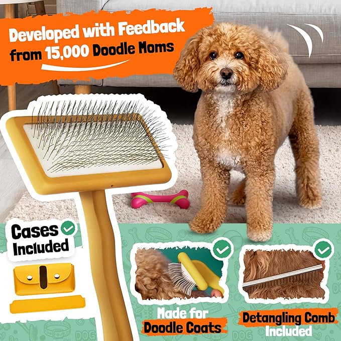 - [DESIGNED BY DOODLE MOMS] Built with real feedback, our doodle slicker brush was crafted to handle tough coats. Whether you need a goldendoodle brush or a slicker brush for poodles, this kit is made with love by Doodle Moms who know curly coats best.