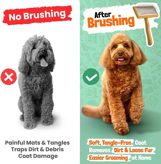 - [EASY GROOMING AT HOME] Our doodle brushes for grooming glide through curls, reducing mats and boosting coat shine. The Doodleez slicker brushes for dogs make grooming easy and stress-free for Goldendoodles, Labradoodles, and Poodles.