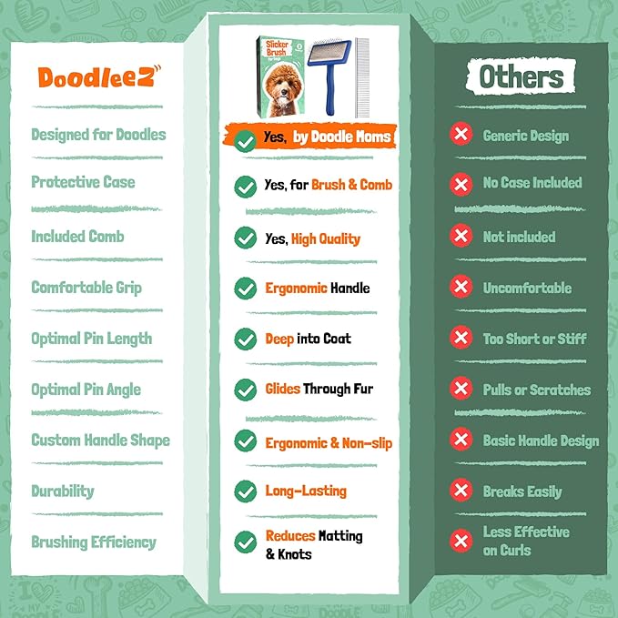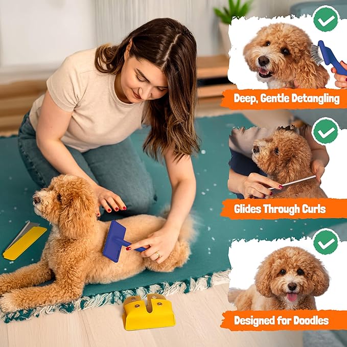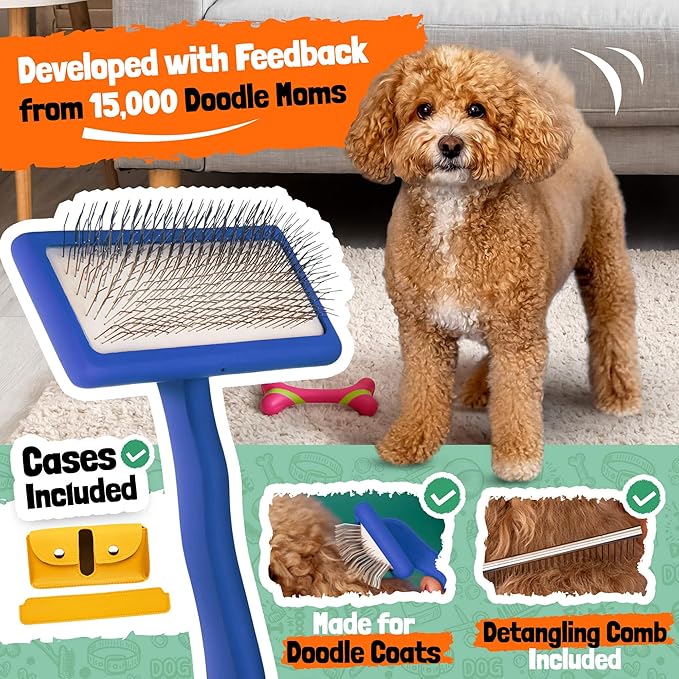 - [DESIGNED BY DOODLE MOMS] Built with real feedback, our doodle slicker brush was crafted to handle tough coats. Whether you need a goldendoodle brush or a slicker brush for poodles, this kit is made with love by Doodle Moms who know curly coats best.