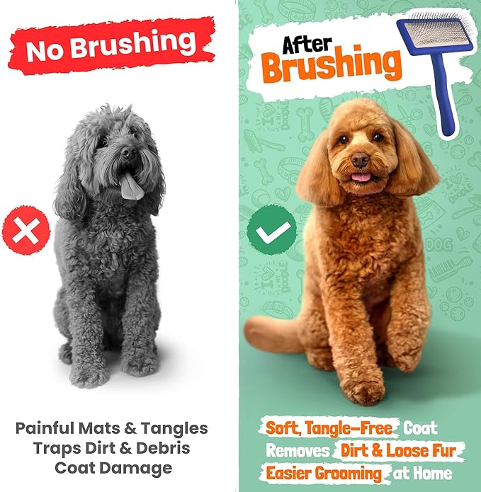 - [EASY GROOMING AT HOME] Our doodle brushes for grooming glide through curls, reducing mats and boosting coat shine. The Doodleez slicker brushes for dogs make grooming easy and stress-free for Goldendoodles, Labradoodles, and Poodles.