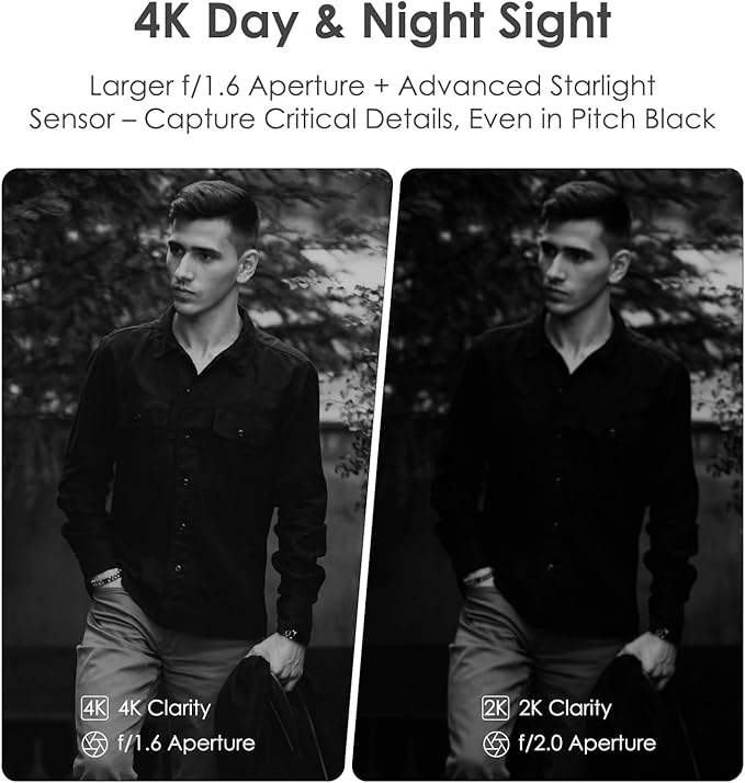 - 【4K Clarity & Dual-Band】Experience 4K camera precision with outdoor camera wireless technology. Dual-band (5G/2.4G) wifi camera ensures seamless streaming for your security camera system, capturing license plates or facial details even at 30ft. Perfect for monitoring package thefts or kids/pets in real time.