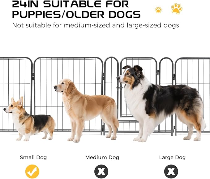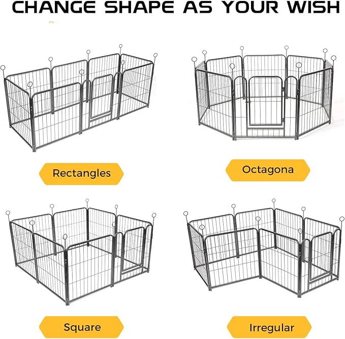 - PREMIUM SAFETY DESIGN: This heavy duty dog playpen features solid steel bars that won't bend or wobble, with protective ball toppers to keep paws safe. while non-slip silicone bases guard floors and enhance stability - even when your dog leans against it. The gravity auto-lock gate ensures smooth operation while preventing accidental escapes. Every detail is engineered for absolute safety, giving you complete peace of mind