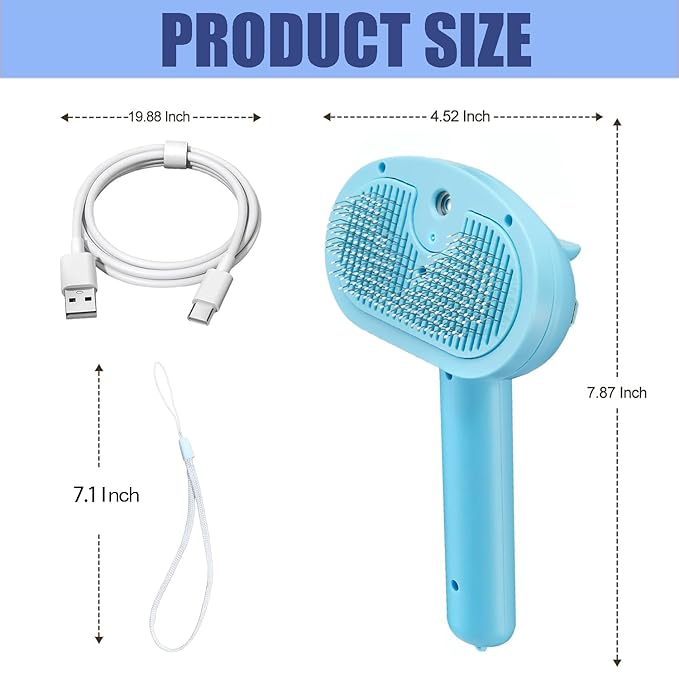 - UNIQUE HAIR COMBING AND SWITCH:This cat steam brush is suitable for all long and short-haired pets, the teeth of the comb have enough depth to perfectly fit your pet's hair, thoughtful setting of the self-cleaning button, quickly remove the residual hair between the teeth of the comb, helping you keep your pet's grooming tool clean and hygienic with minimal hassle.