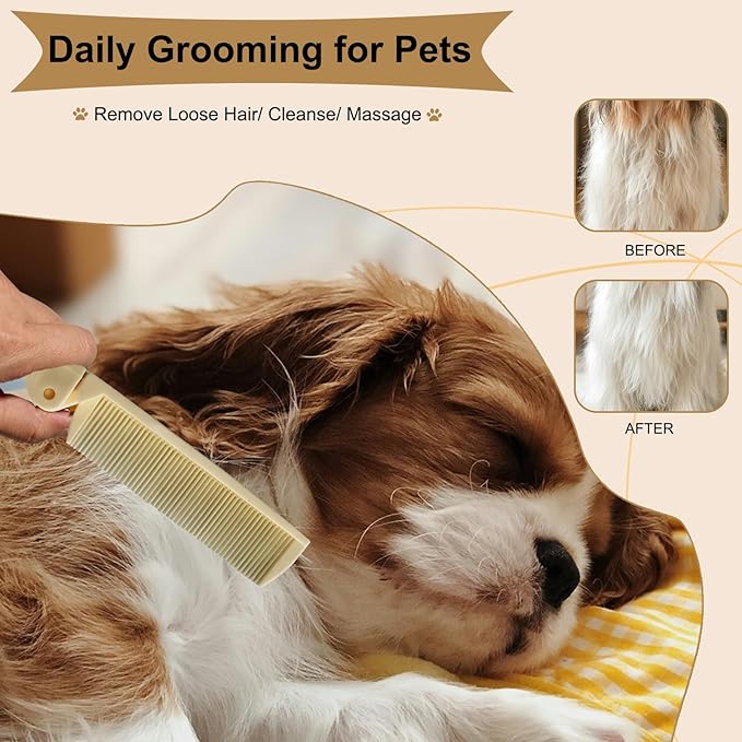 - Dual-Style Grooming Options include a dense-tooth comb for deep cleaning thick fur and removing stubborn mats and a wide-spaced comb for gentle detangling of delicate coats ensuring a pain-free experience for puppies and senior dogs with sensitive skin or fine hair prone to irritation
