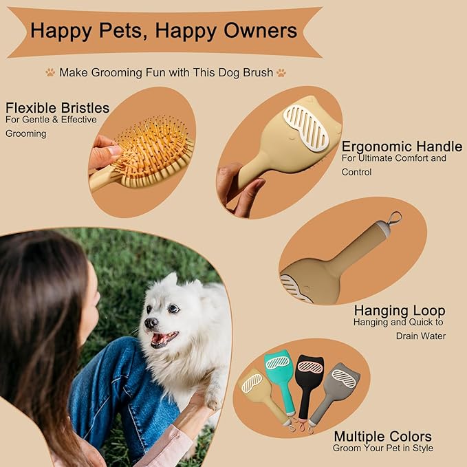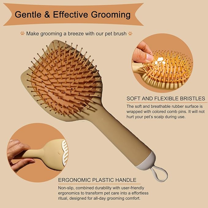 - Skin-Safe Flexible Bristles adapt to body contours with optimal pressure control reducing pulling on sensitive areas like ears bellies and tails while the unique cat-ear handle design offers stability for thorough brushing even on anxious puppies or senior dogs