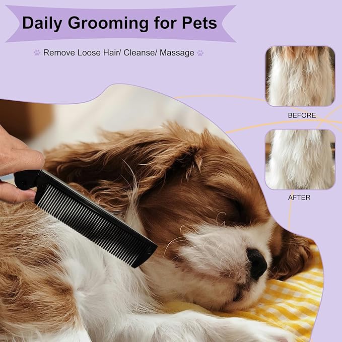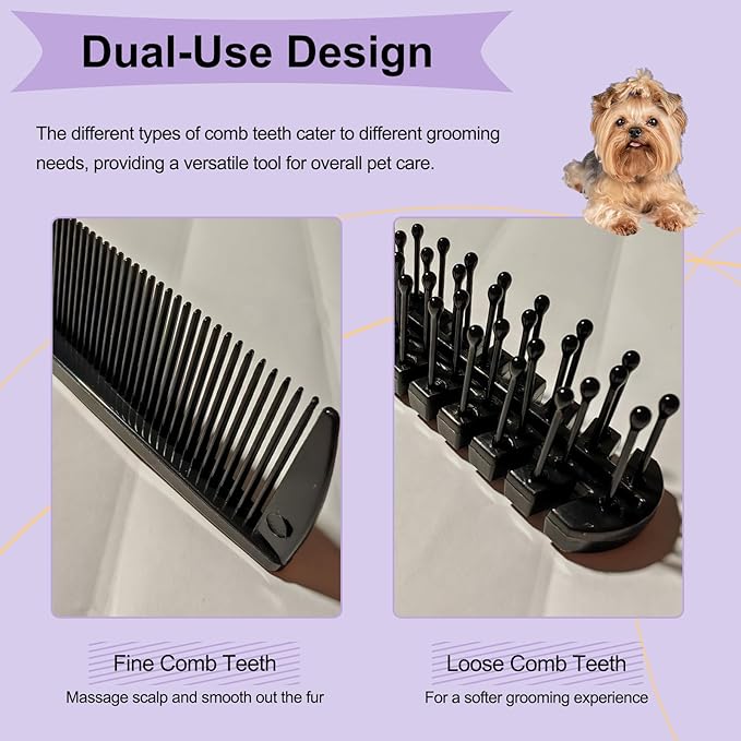 - Dual-Style Grooming Options include a dense-tooth comb for deep cleaning thick fur and removing stubborn mats and a wide-spaced comb for gentle detangling of delicate coats ensuring a pain-free experience for puppies and senior dogs with sensitive skin or fine hair prone to irritation