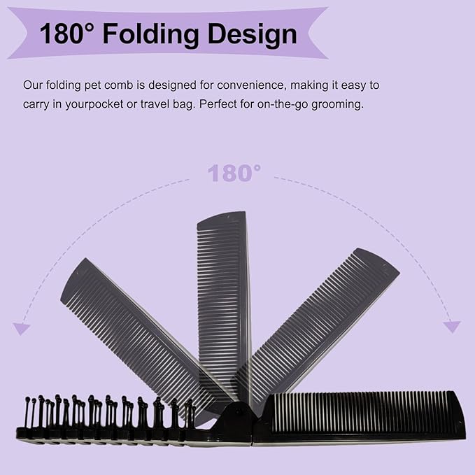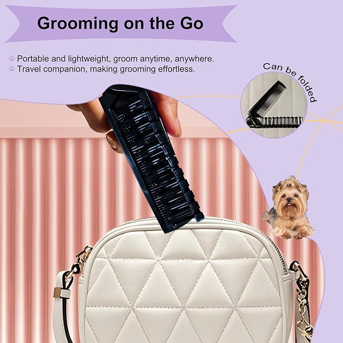 - Foldable Compact Design features two interchangeable comb heads that collapse into the BPA-free plastic handle for effortless storage and travel-friendly portability making it ideal for grooming small dogs like Yorkies Shih Tzus and Maltipoos during trips or outdoor adventures while protecting soft puppy skin with flexible bristles