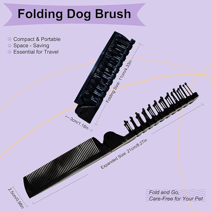 - Durable Travel-Ready Construction combines lightweight plastic with a collapsible design that resists bending or cracking while the smooth bristle base prevents hair buildup for quick cleaning after grooming sessions perfect for keeping in purses car consoles or pet travel kits
